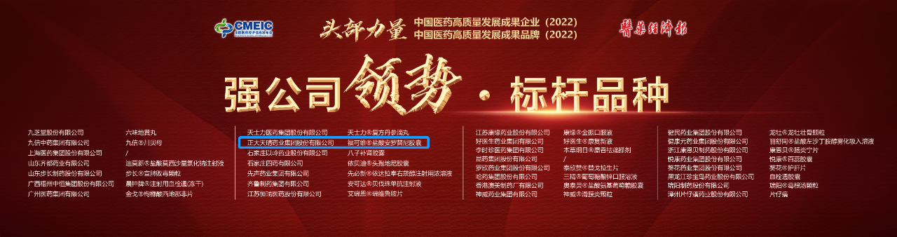 2022年度頭部力量·中國醫藥高質量發展成果企業、成果品牌評選由《醫藥經濟報》發起,綜合各項評選標準和因素,最終一批來自產業鏈不同環節、不同領域的優秀企業和品牌脫穎而出,正大天晴藥業憑借在業內領先的研發創新能力以及優質的產品榜上有名。