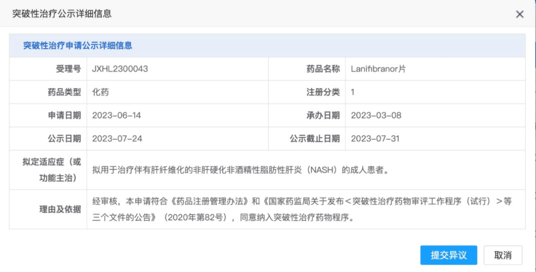 中國生物制藥 1 類新藥 Lanifibranor 片被 CDE 擬納入突破性治療藥物程序