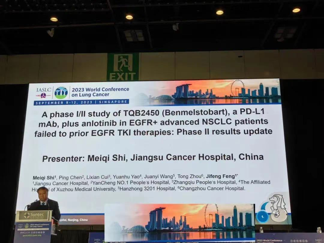 8.Meiqi Shi,et al. A phase I/II study of TQB2450 (Benmelstobart), a PD-L1 mAb, plus anlotinib in EGFR+ advanced NSCLC patients failed to prior EGFR TKI therapies: Phase II results update. 2023 WCLC