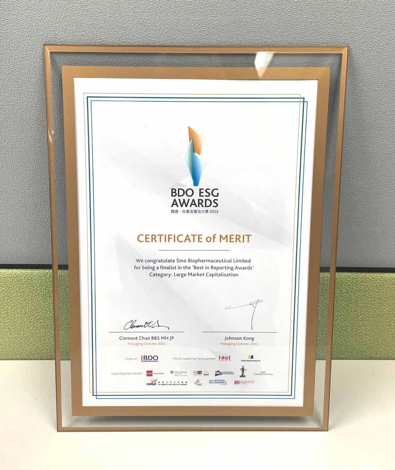 BDO環境、社會及管治大獎自2018年設立,迄今已連續舉辦五屆。該獎項的設立旨在表揚于環境、社會及管治(ESG)范疇上表現突出并有積極影響的香港上市公司設立,鼓勵企業將可持續發展深度融合于業務運營,藉以更高的履行社會責任。為了表彰中國生物制藥2022年度在ESG管治、信息披露以及利益相關方溝通領域的卓越表現,BDO為公司頒發「最佳 ESG 報告大獎優異認證」證書。