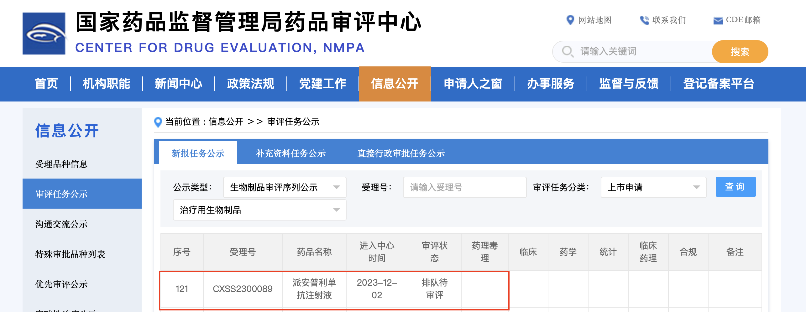 2023年12月2日,國家藥品監督管理局藥品審評中心官網顯示,中國生物制藥旗下核心企業正大天晴聯合開發的PD-1單克隆抗體藥物派安普利單抗注射液(商品名:安尼可®)聯合化療一線治療復發或轉移鼻咽癌(NPC)的新藥上市申請(NDA)已獲NMPA受理。