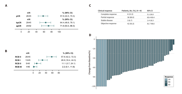 圖 2  ITT人群的pCR、RCB和臨床緩解情況(N = 45)
