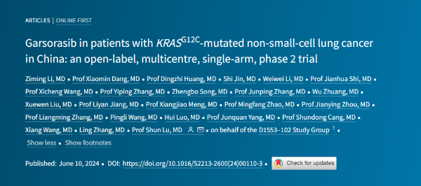 本次刊登在《柳葉刀-呼吸病學(xué)》的研究是一項(xiàng)在中國(guó)進(jìn)行的開(kāi)放標(biāo)簽、多中心、II期單臂注冊(cè)研究,旨在評(píng)估Garsorasib在KRAS G12C突變的局部晚期或轉(zhuǎn)移性非小細(xì)胞肺癌患者中的有效性和安全性。研究由上海市胸科醫(yī)院陸舜教授牽頭,聯(lián)合全國(guó)多家醫(yī)院合作完成。