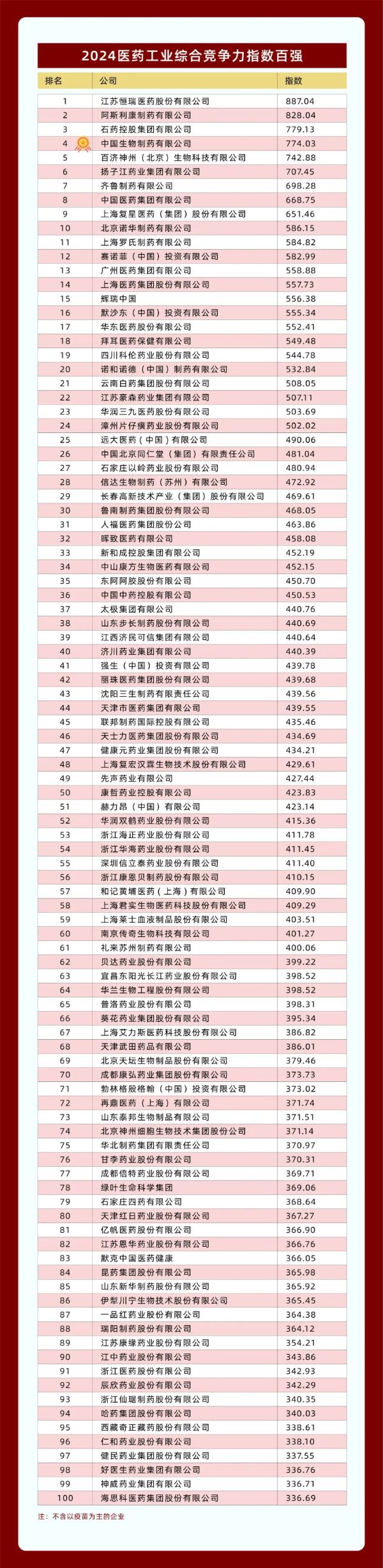中國生物制藥位列2024醫藥工業綜合競爭力指數百強第4位