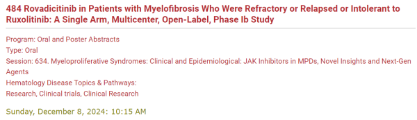 [1] Chunkang Chang,et al.Rovadicitinib in Patients with Mvelofibrosis Who Were Refractory or Relapsed or Intolerant to Ruxolitinib: A Single Arm, Multicenter, Open-Label, Phase lb Study.2024 ASH.