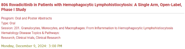 [2] Zhao Wang,et al.Rovadicitinib in Patients with Hemophagocytic Lymphohistiocytosis: A single Arm, open-Label,Phase l Study.2024 ASH.