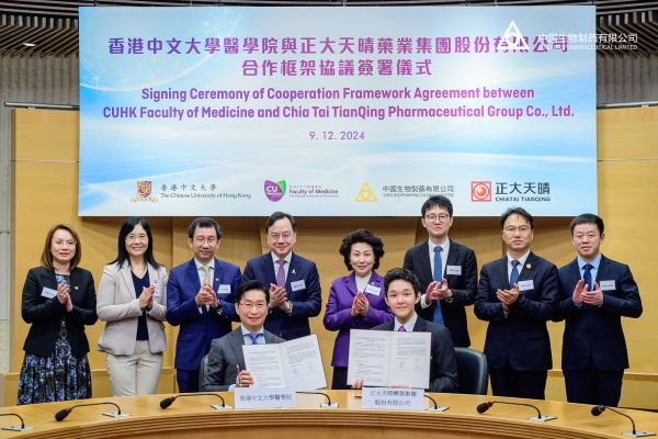 優勢互補共創“產學研”新格局 正大天晴與香港中文大學醫學院簽署合作框架協議