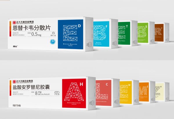 不同于傳統的創意設計,藥品包裝設計留給設計師的空間極其有限,需要在各種因素的限制下發揮創造性。正大天晴藥品包裝升級項目歷時一年多打磨,由公關品牌中心跨多個部門組織專家進行了十幾輪設計方案論證,并通過外部醫療行業專家多次調研測試。最終,以產品通用名英文首字母作為視覺符號,以科技分子式抽象元素作為設計語言,嵌入了正大天晴品牌logo雙圓圖形的專屬包裝符號應運而生。