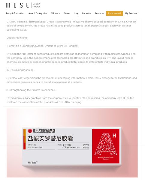 此次榮獲2025MUSE設計獎,不僅是對正大天晴產品包裝設計的極高贊譽,更是對藥品科技與人文精神融合創新的高度肯定,是中國醫藥品牌的美學覺醒。期待通過正大天晴產品包裝形象的升級,助力產品品牌價值提升,將品牌關愛傳遞到終端用戶的手中,創造全球患者獲益,用健康科技,溫暖更多生命。