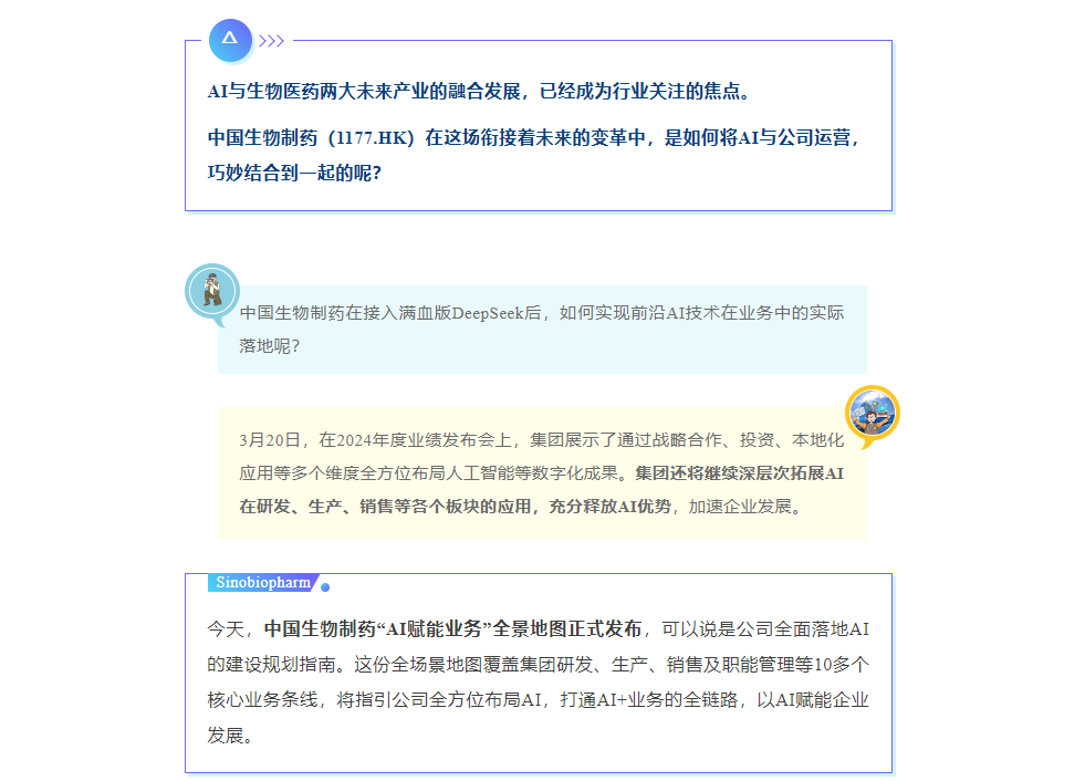 中國生物制藥將AI工具應用于創新研發,致力于構建覆蓋藥物前期設計、創新研發提效、臨床試驗管理與風險識別、臨床數據管理等全鏈條智能化體系。