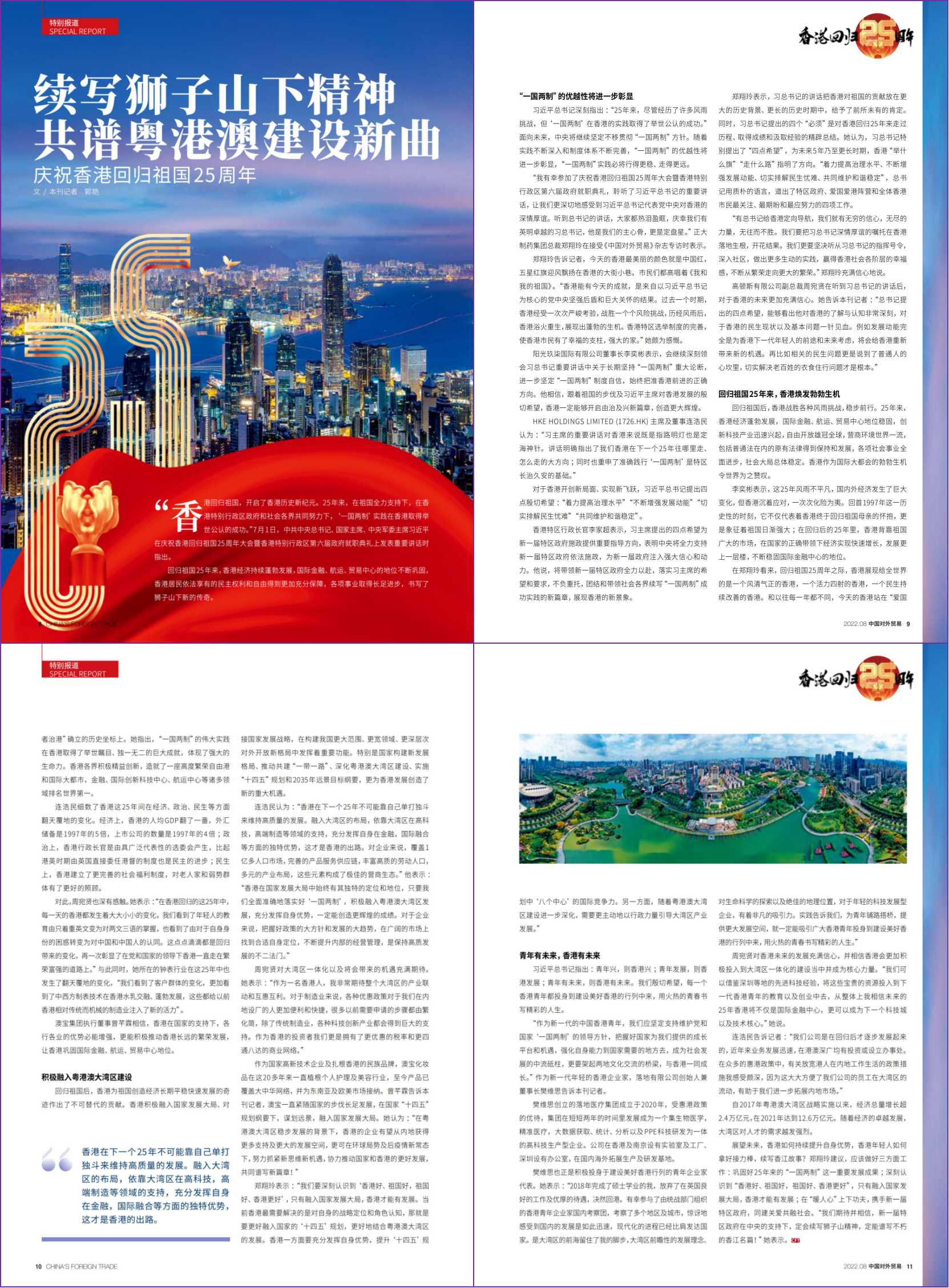 《中國對(duì)外貿(mào)易》雜志慶香港回歸25周年特別報(bào)道|“續(xù)寫?yīng){子山下精神 共譜粵港澳建設(shè)新曲” 正大制藥總裁鄭翔玲接受采訪