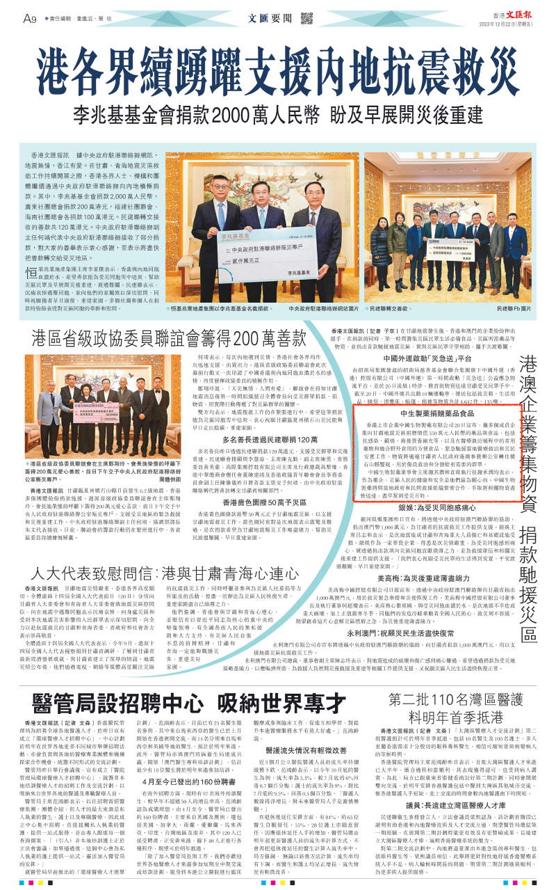 香港文匯報|港澳企業籌集物資 捐款馳援災區