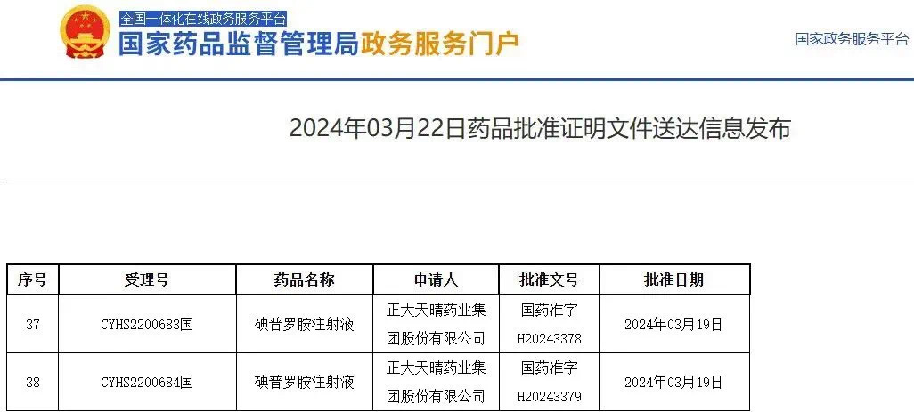 此前正大天晴獲批上市的造影劑