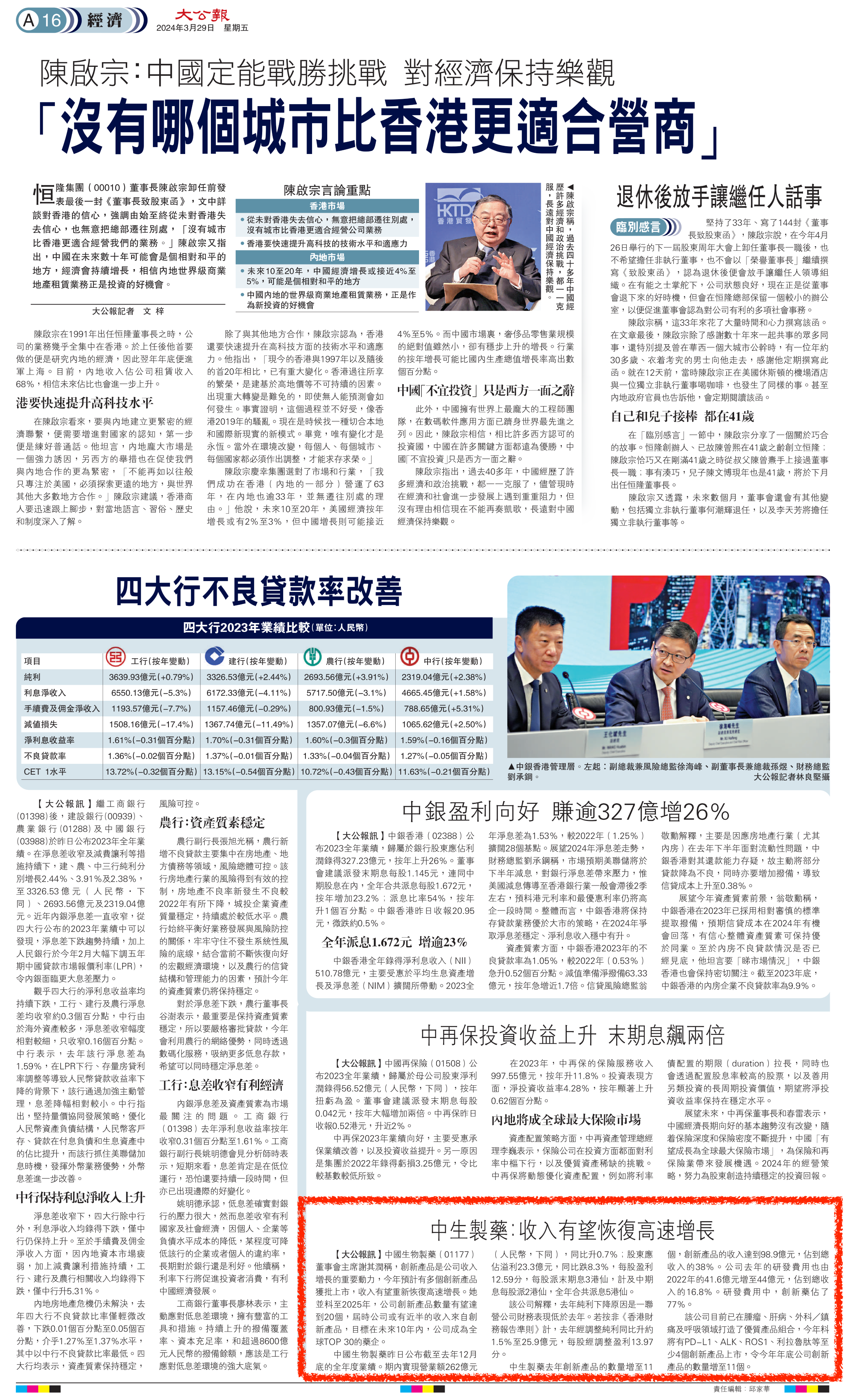 該公司解釋,去年純利下降原因是一聯營公司財務表現低於去年。若按非《香港財務報告準則》計,去年經調整純利同比升約1.5%至25.9億元,每股經調整盈利13.97分。